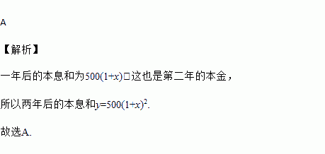 小红把班级勤工助学挣得的班费500元按一年期存入银行,已知年利率为x,一年到期后银行将本金和利息自动按一年定期转存,设两年到期后,本、利和为y元,则y与x之间的函数关系式为( )