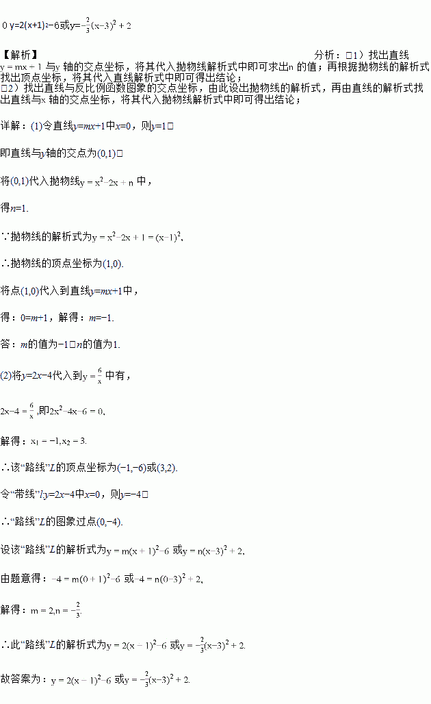 (1) ÈôÖ±Ïßy=mx+1ÓëÅ×ÎïÏßy=x2-2x+n¾ßÓС°Ò»´øÒ»Â·¡±¹ØÏµ£¬Ôòm+n=_______.