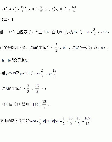 如图,已知直线l1:y=2x+3,直线l2:y=﹣x+5,直线l1、l2分别交x轴于B、C两点,l1、l2相交于点A.