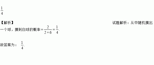 )在一个不透明的袋子中有2个白球和6个黑球,他们除了颜色不同外,其余均相同,若从中随机摸出一个球,摸到白球的概率是_____.