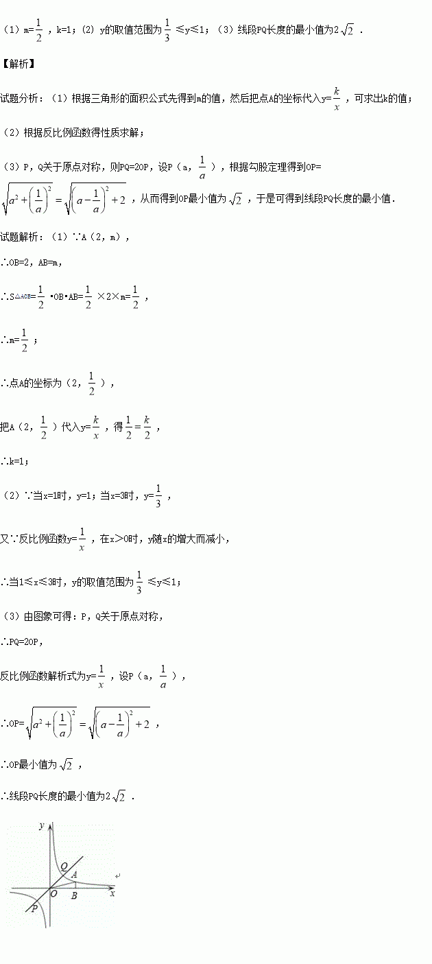 (k>0)的图象经过点A(2,m),过点A作AB⊥x轴于点B,且△AOB的面积为