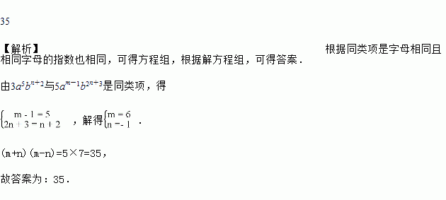 若3a5bn+2与5am-1b2n+3是同类项,则(m+n)(m-n)=________.