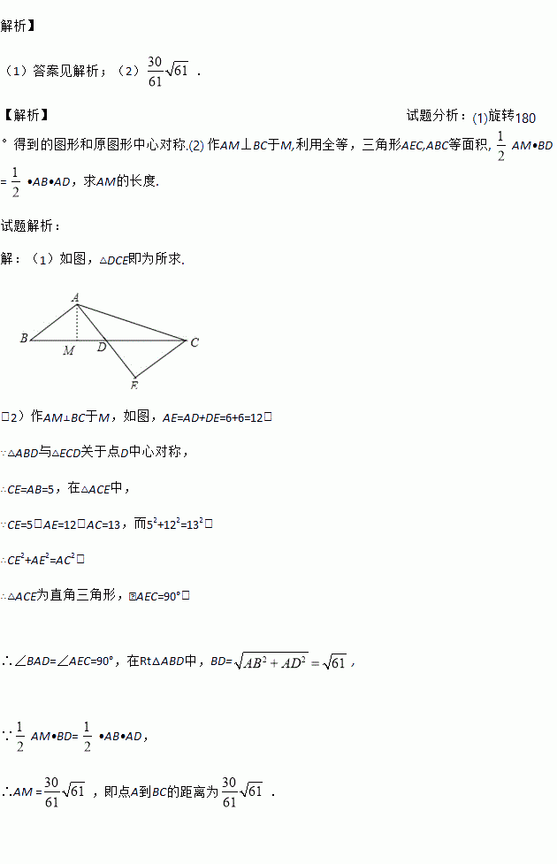 (1)以点D为对称中心,作出△ABD的中心对称图形;