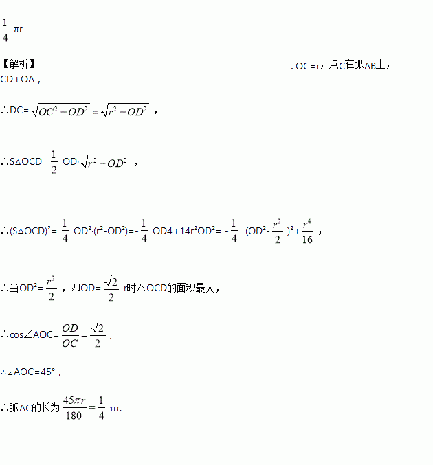 如图,在扇形OAB中,∠AOB=60°,扇形半径为r,点C在弧AB上,CD⊥OA,垂足为D,当△OCD的面积最大时,弧AC的长为________.
