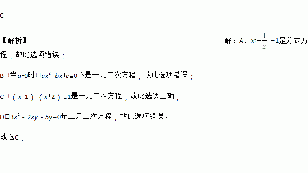 A. x2+=1 B. ax2+bx+c=0 C. (x+1)(x+2)=1 D. 3x2﹣2xy﹣5y=0
