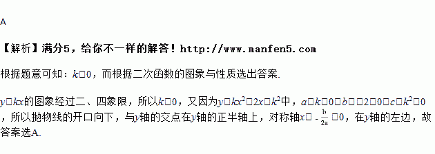 正比例函数y=kx的图象经过二、四象限,则抛物线y=kx2﹣2x+k2的大致图象是( )