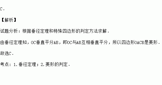 如图所示,圆O的弦AB垂直平分半径OC,则四边形OACB( )