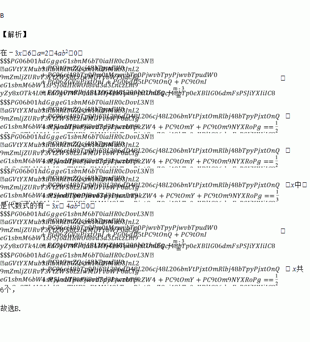 在﹣3x,6﹣a=2,4ab2,0,,,>,x中,是整式的共有( )