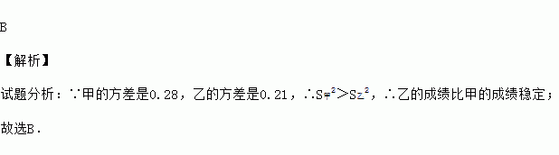 A.甲的成绩比乙的成绩稳定