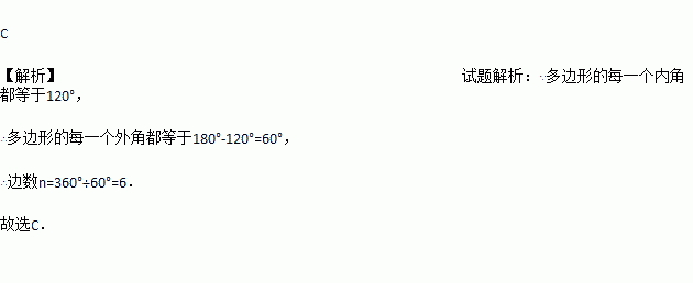 一个多边形的每个内角都等于120°,则这个多边形的边数为