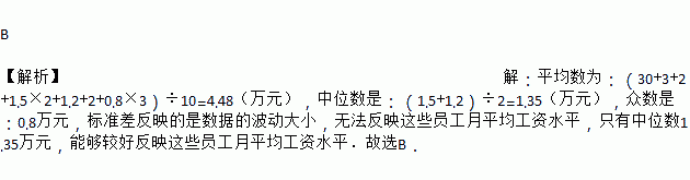 一个民营企业10名员工的月平均工资如下表,则能较好反映这些员工月平均工资水平的是( )