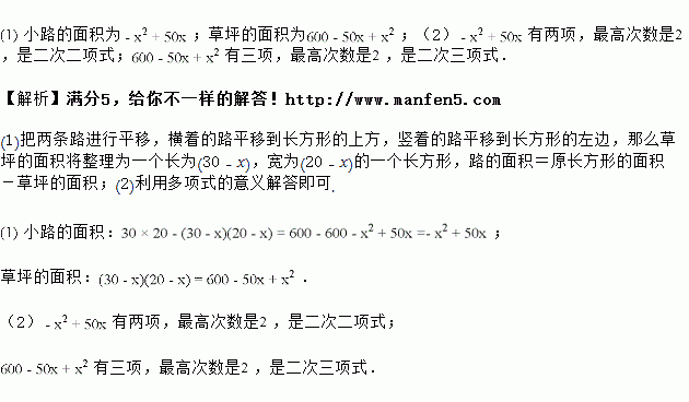 的式子分别表示出草坪的面积、小路的面积;![]()