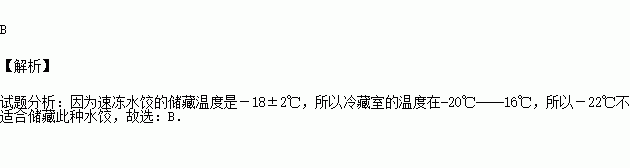 某种速冻水饺的储藏温度是-18±2℃,四个冷藏室的温度如下,则不适合储藏此种水饺的是( )
