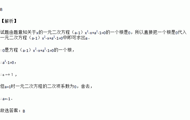 已知关于x的一元二次方程的一个根是0,则a的值为( ).