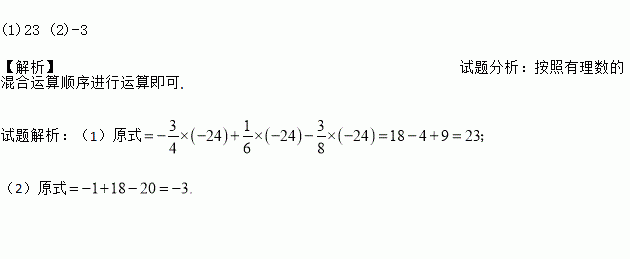 (1)(﹣+﹣)×(﹣24);