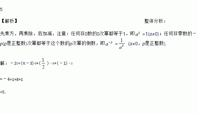 计算:﹣22÷(π﹣3)0+()﹣3+(﹣1)﹣2.