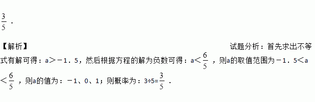 (2015重庆市)从﹣2,﹣1,0,1,2这5个数中,随机抽取一个数记为a,则使关于x的不等式组有解,且使关于x的一元一次方程的解为负数的概率为_____.