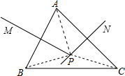 分析:连接AP,由MP为线段AB的垂直平分线,根据垂直平分线的性质可得AP=BP,同理可得AP=CP,等量代换可得AP=BP=CP,然后根据等边对等角可得∠ABP=∠BAP,∠PAC=∠ACP及∠PBC=∠PCB,由已知的∠BAC的度数求出∠BAP+∠CAP的度数,等量代换可得∠ABP+∠ACP的度数,同时根据三角形的内角和定理可得∠ABP+∠PBC+∠PCB+∠ACP,进而得到∠PBC+∠PCB的度数,再根据两角相等,即可求出所求角的度数.