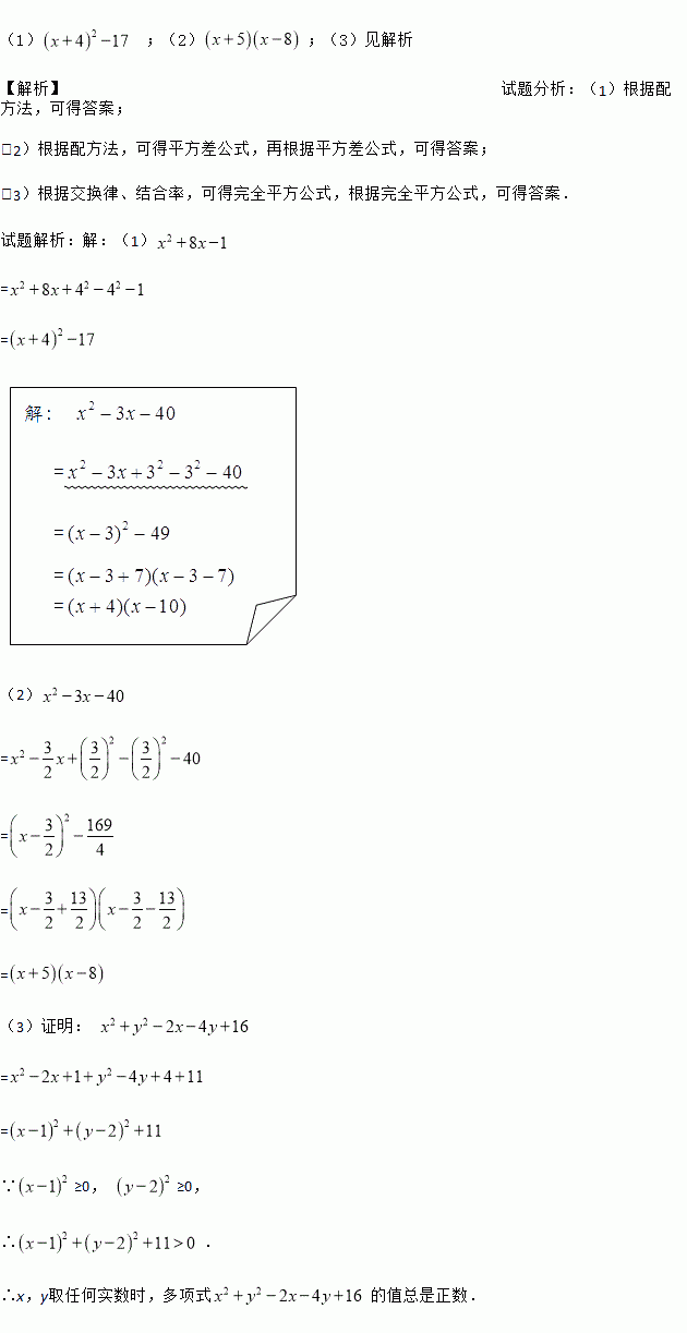 (1)用多项式的配方法将