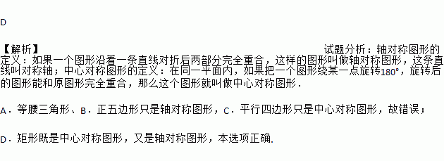 A. 等腰三角形 B. 正五边形 C. 平行四边形 D. 矩形