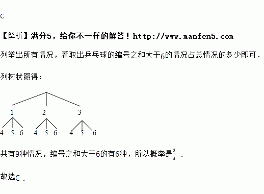 个乒乓球,则取出乒乓球的编号之和大于![]()