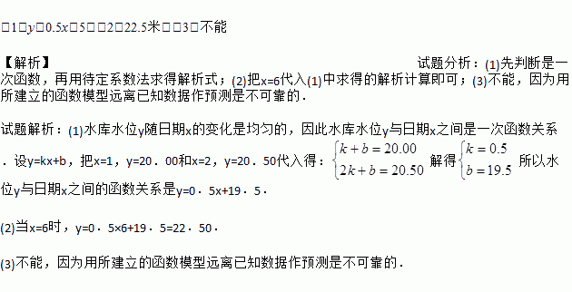 水位y(米) | 20.00 | 20.50 | 21.00 | 21.50 |