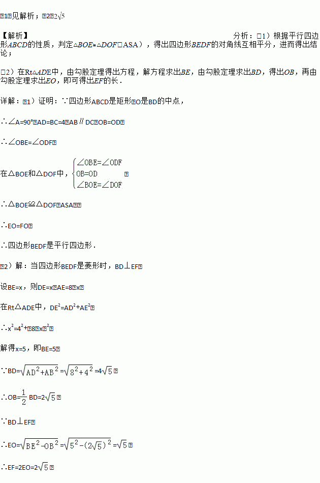(2)当四边形BEDF是菱形时,求EF的长.