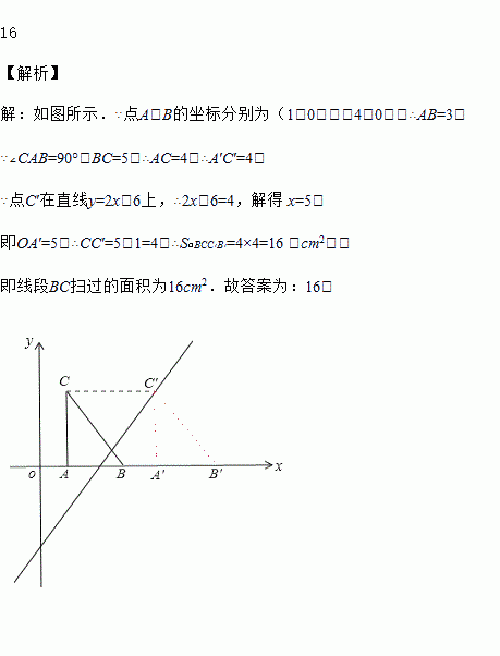如图,把Rt△ABC放在直角坐标系内,其中∠CAB=90°,BC=5,点A,B的坐标分别为(1,0),(4,0),将△ABC沿x轴向右平移,当C点落在直线y=2x-6上时,线段BC扫过的区域面积为________.