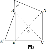 如图3,旋转中心:正方形对角线交点O;顺时针旋转90°,