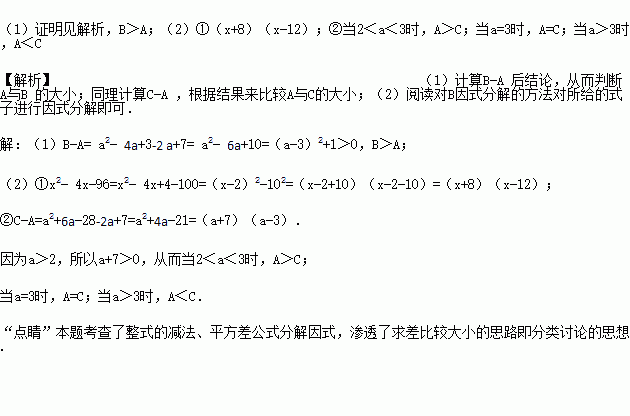 (1)求证:B-A>0,并指出A与B的大小关系;