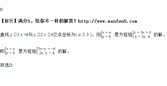 如果直线 y =3 x +6与 y =2 x -4交点坐标为( a , b ),则 是方程组__________的解.( )