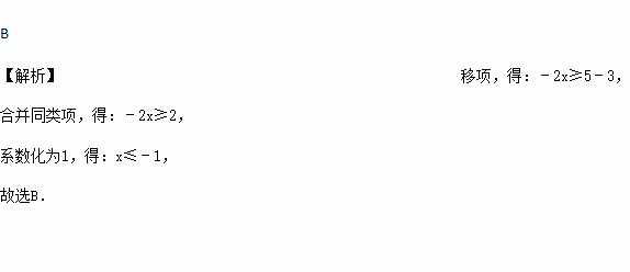 不等式﹣2x+3≥5的解集在数轴上表示为( )