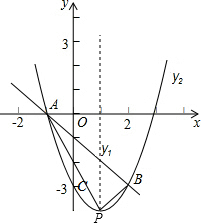 ∵二次函数y2=ax2+bx-3经过A(-1,0)、B(2,-3),