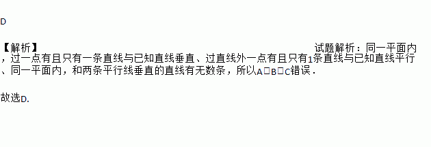 A. 同一平面内,过一点有无数条直线与已知直线垂直