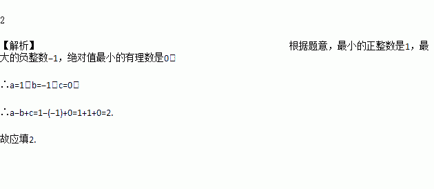 设a是最小的正整数,b是最大的负整数,c是绝对值最小的有理数,则a-b+c=__.