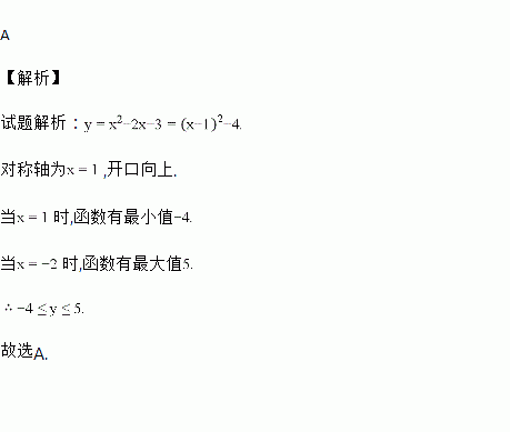 (题文)函数y=x2-2x-3中,当-2≤x≤3时,函数值y的取值范围是( )