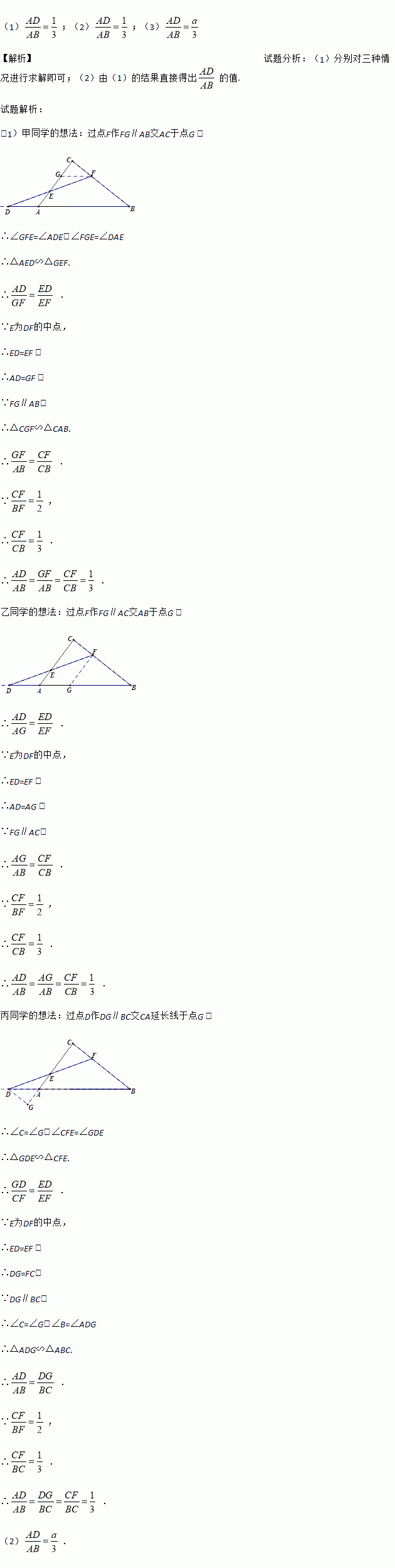 甲:过点F作FG∥AB交AC于点G,构造相似三角形解决问题;