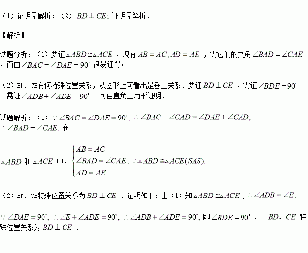 (2)试猜想BD、CE有何特殊位置关系,并证明你的结论.