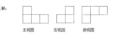 如图的几何体是由5个相同的正方体搭成的, 请画出它的主视图、左视图和俯视图