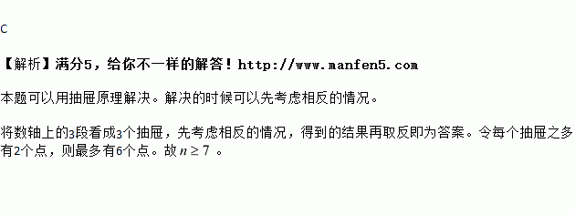 -2和2对应的点将数轴分成3段,如果数轴上任意n个不同的点中至少有3个在其中之ㄧ段,