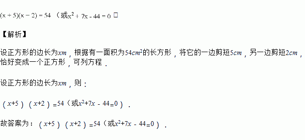 有一个面积为的长方形,将它的一边剪短,另一边剪短,得到一个正方形.若设这个正方形的边长为 ,则根据题意可得方程_________.