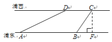 如图,世博园段的浦江两岸互相平行,C、D是浦西江边间隔200m的两个场馆.海宝在浦东江边的宝钢大舞台A处,测得∠DAB=30°, 然后沿江边走了500m到达世博文化中心B处,测得∠CBF=60°, 求世博园段黄浦江的宽度(结果可保留根号).