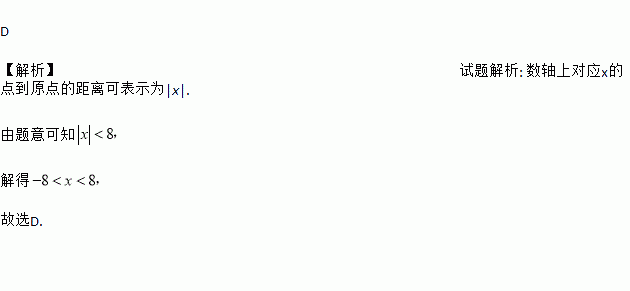在数轴上与原点的距离小于8的点对应的满足( )