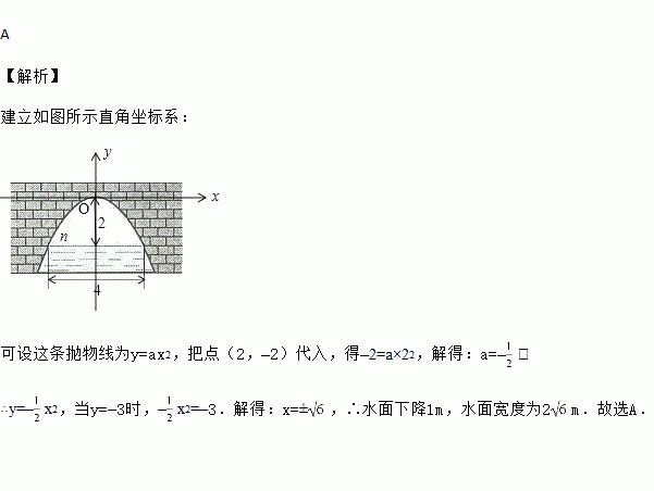 如图,图中是抛物线形拱桥,当拱顶离水面2m时水面宽4m.水面下降1m,水面宽度为( )