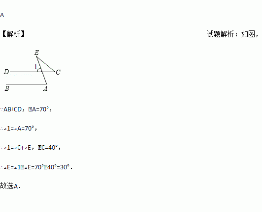 如图,直线AB∥CD,∠A=70°,∠C=40°,则∠E等于( )