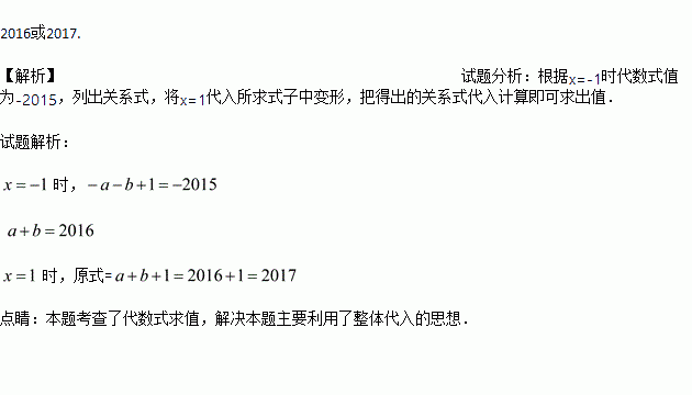 已知当x=-1时,代数式ax3+bx+1的值为-2015,则当x=1时,代数式ax3+bx+1的值为多少?