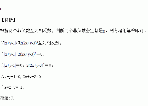 如果|x+y-1|和2(2x+y-3)2互为相反数,那么x、y的值是( )