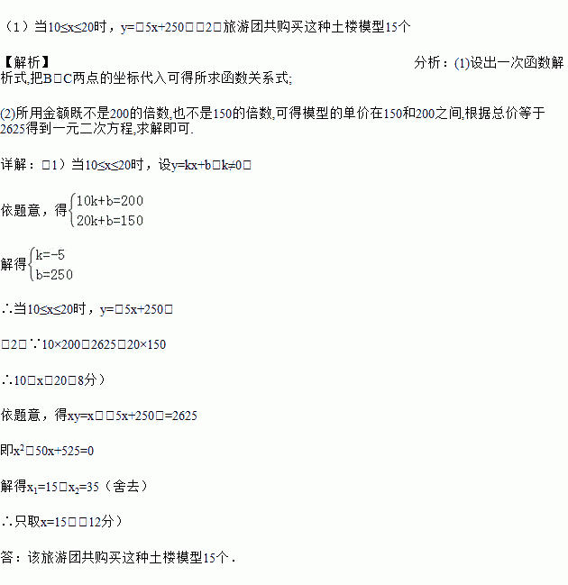 (2)已知某旅游团购买该种规格的土楼模型总金额为2625元,问该旅游团共购买这种土楼模型多少个?(总金额=数量×单价)