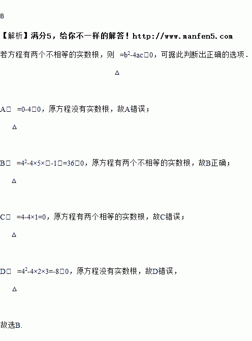 下列方程中,有两个不相等实数根的方程是( )