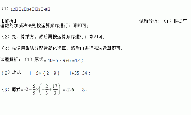 (1) 10﹣(﹣5)+(﹣9)+6; (2)﹣14﹣5×[2﹣(﹣3)2];